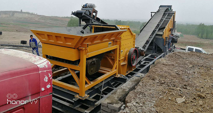 移動式破碎站主破碎設備為破碎機,物料經給料機均勻輸送到破碎機內,被破碎機初步破碎以后由圓振動篩構成閉路系統,實現物料的循環破碎,符合粒度要求的物料由輸送機輸出,從而達到生產目的。移動式破碎站還可以根據實際生產需要去除圓振動篩,而直接對物料進行初步破碎,然后配合其他破碎設備進行具體的操作,方便、靈活。
