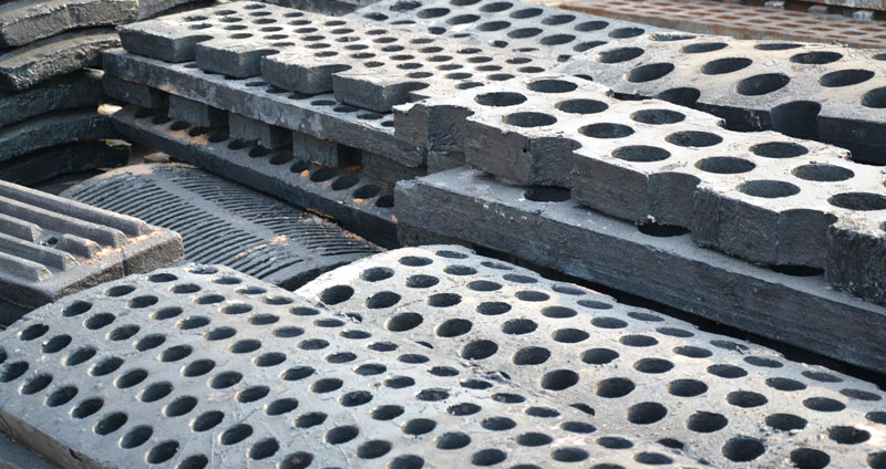 漏板又叫蓖板、篩板等,是錘式破碎機的重要組件之一,主要作用是控制出料粒度,山東金寶山機械有限公司采用的漏板材質是高標準的鉻鉬合金,耐磨有韌性,受到客戶的廣泛好評。根據客戶要求可以定制圓孔、方孔、橫條、豎條等尺寸,歡迎選購。