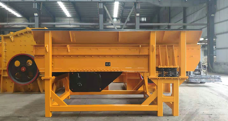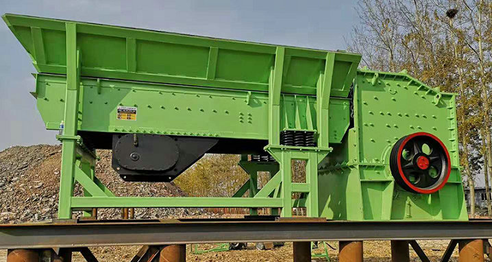 金寶山ZSW系列重型直線振動(dòng)給料機(jī)專(zhuān)為破碎篩分中、粗破碎機(jī)前均勻輸送大塊物料設(shè)計(jì)。振動(dòng)給料機(jī)采用雙偏心軸激振器的結(jié)構(gòu)特點(diǎn),保證設(shè)備能承受大塊物料下落的沖擊,給料能力大。在生產(chǎn)流程中可以把塊狀、顆粒狀物料從貯料倉(cāng)中均勻、定時(shí)、連續(xù)地給到受料裝置中去,從而防止受料裝置因進(jìn)料不均而產(chǎn)生死機(jī)的現(xiàn)象,延長(zhǎng)了設(shè)備使用壽命。給料機(jī)可分為鋼板結(jié)構(gòu)和篦條結(jié)構(gòu),鋼板結(jié)構(gòu)的給料機(jī)多用于砂石料生產(chǎn)線,將物料全部均勻地送入破碎設(shè)備;篦條結(jié)構(gòu)的給料機(jī)可對(duì)物料進(jìn)行粗篩分,使系統(tǒng)在配制上更經(jīng)濟(jì)合理,在破碎篩分中已作為必不可少的設(shè)備。在金寶山機(jī)械有限公司客戶(hù)的石料生產(chǎn)線配置中常用于顎式破碎機(jī)的喂料。